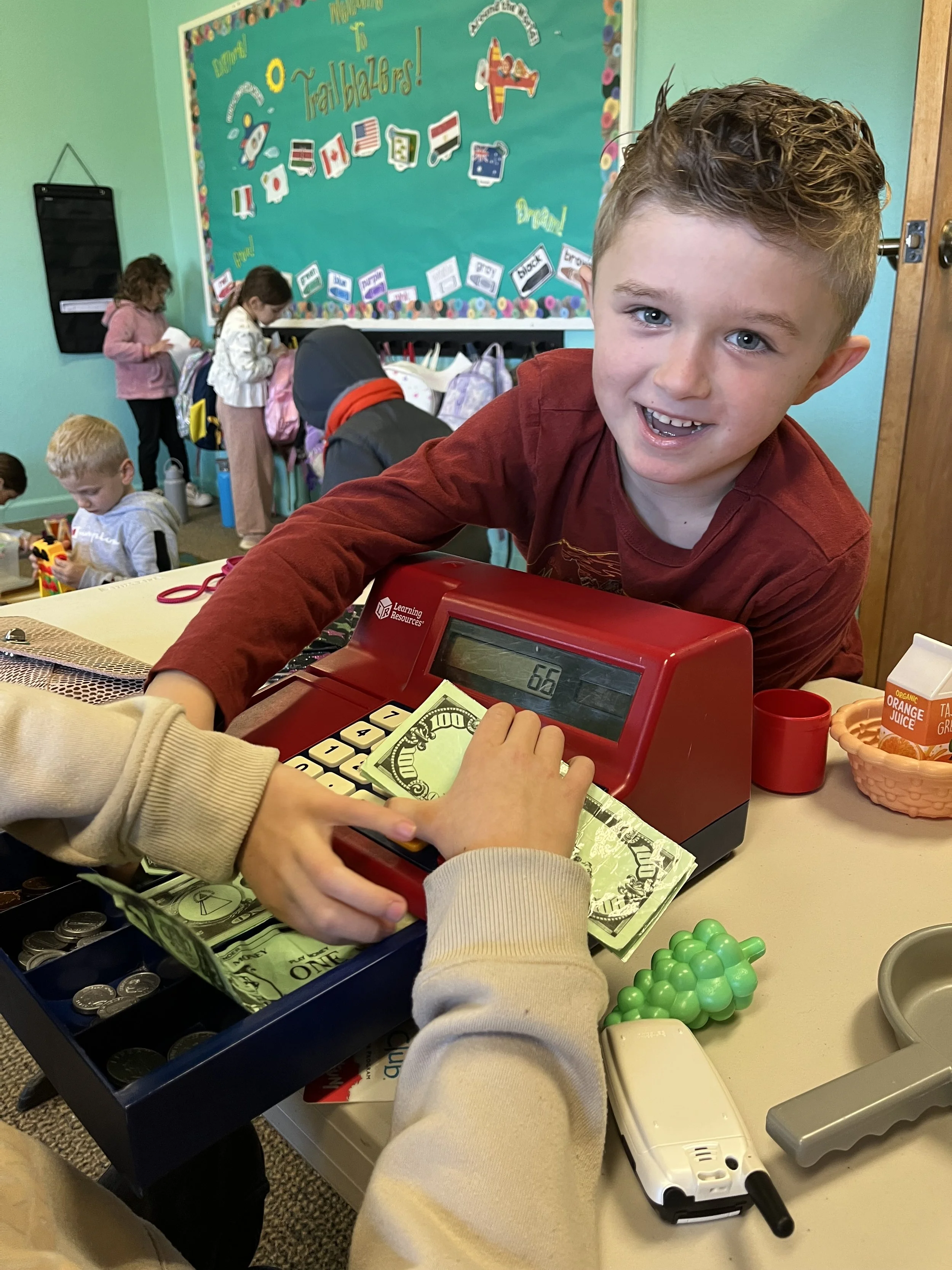Our Transitional Kindergarten (TK) class offers the perfect balance of learning and play! Children engage with letters, numbers, and foundational literacy concepts while strengthening fine motor skills through creative, hands-on projects. Through independent exploration, small group collaboration, and whole-class activities, students gain confidence, independence, and essential life skills such as cooperation, problem-solving, and kindness—nurturing not only school readiness, but also a lifelong love for learning.